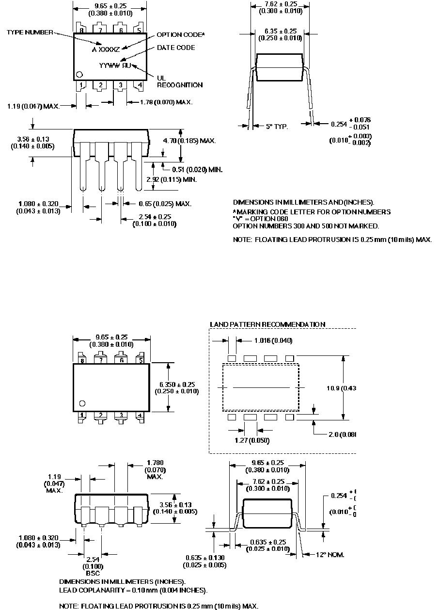 8-Pin DIP Package with Gull Wing Surface Mount Option 300 (HCPL-2300)