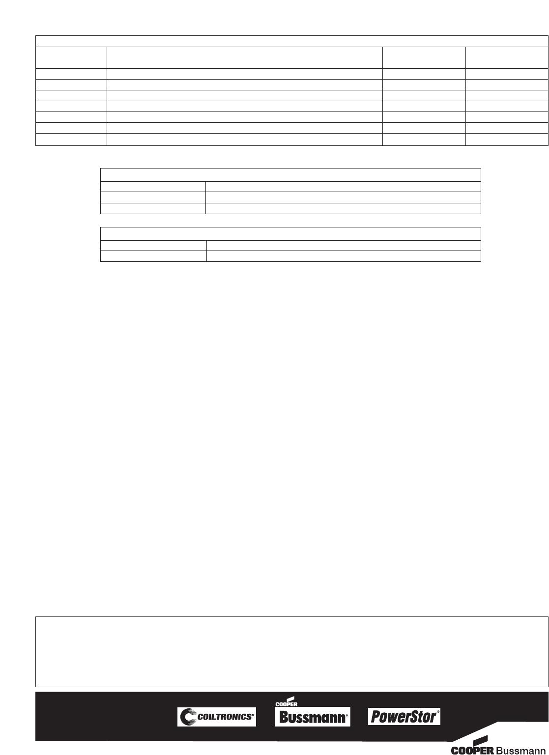 The only controlled copy of this Data Sheet is the electronic read-only version located on the Cooper Bussmann Network Drive.All other copies of this document are by definition uncontrolled. This bulletin is